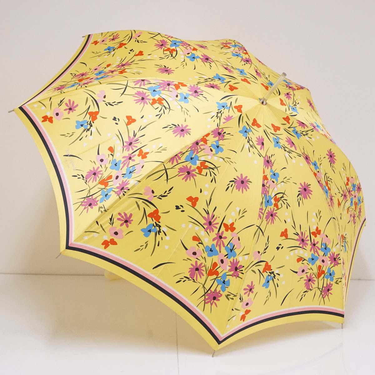 - 傘 Kate spade new york ケイトスペード USED美品 イエロー フラワープリント 花柄 ロゴ グラス骨 日本製 軽量 60cm S1915