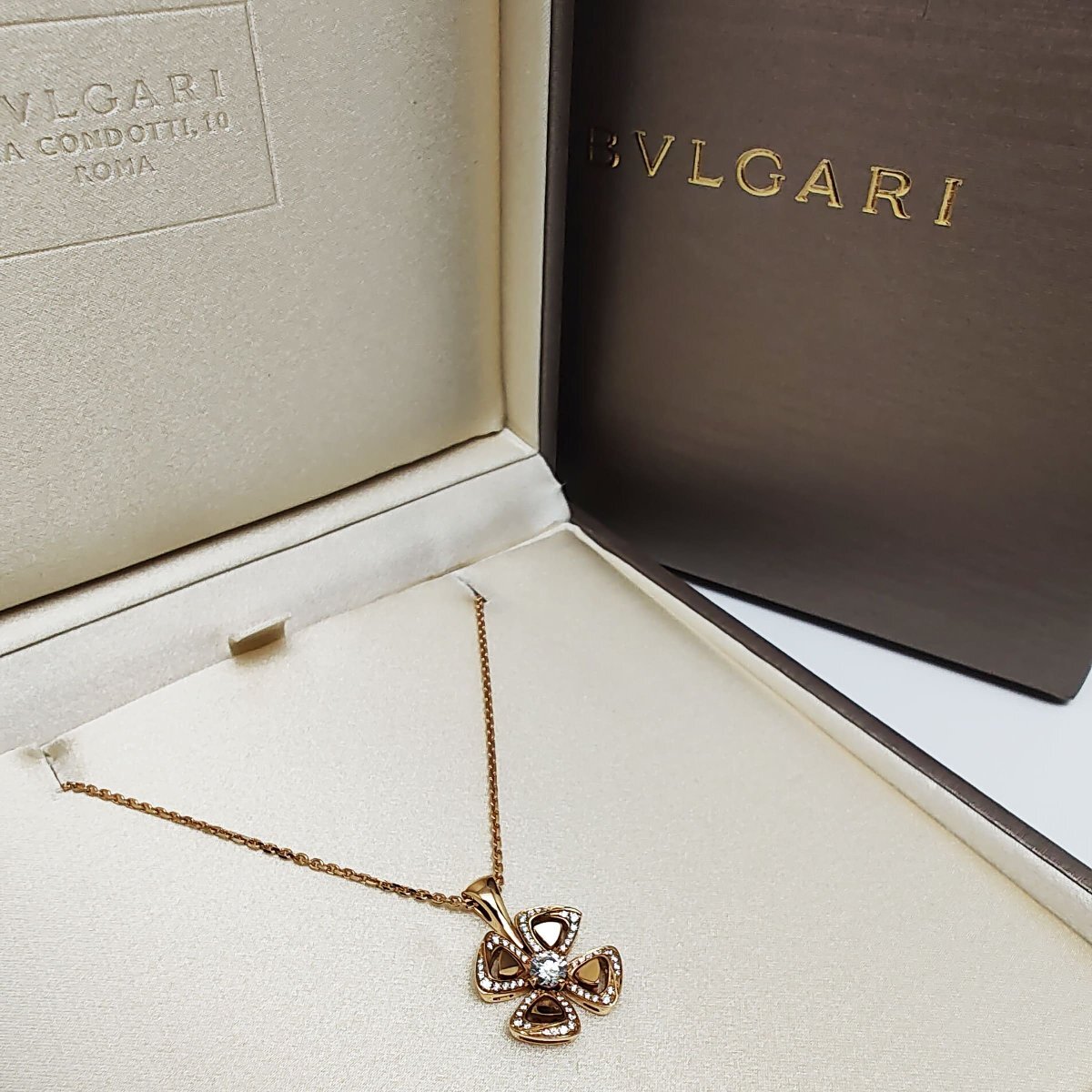 > 中古品 ブルガリ フィオレヴァー ネックレス ピンクゴールド ダイヤモンド フラワーモチーフ K18PG AU750 356223