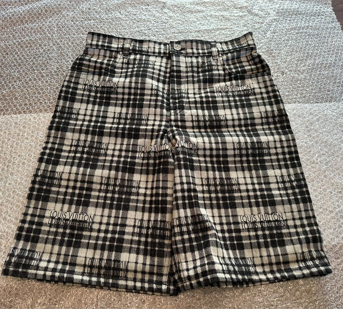 - #98.5 Louis vuitton チェック パンツ ショーツ ファレル nigo bts 限定 ロゴ デニム 未使用品