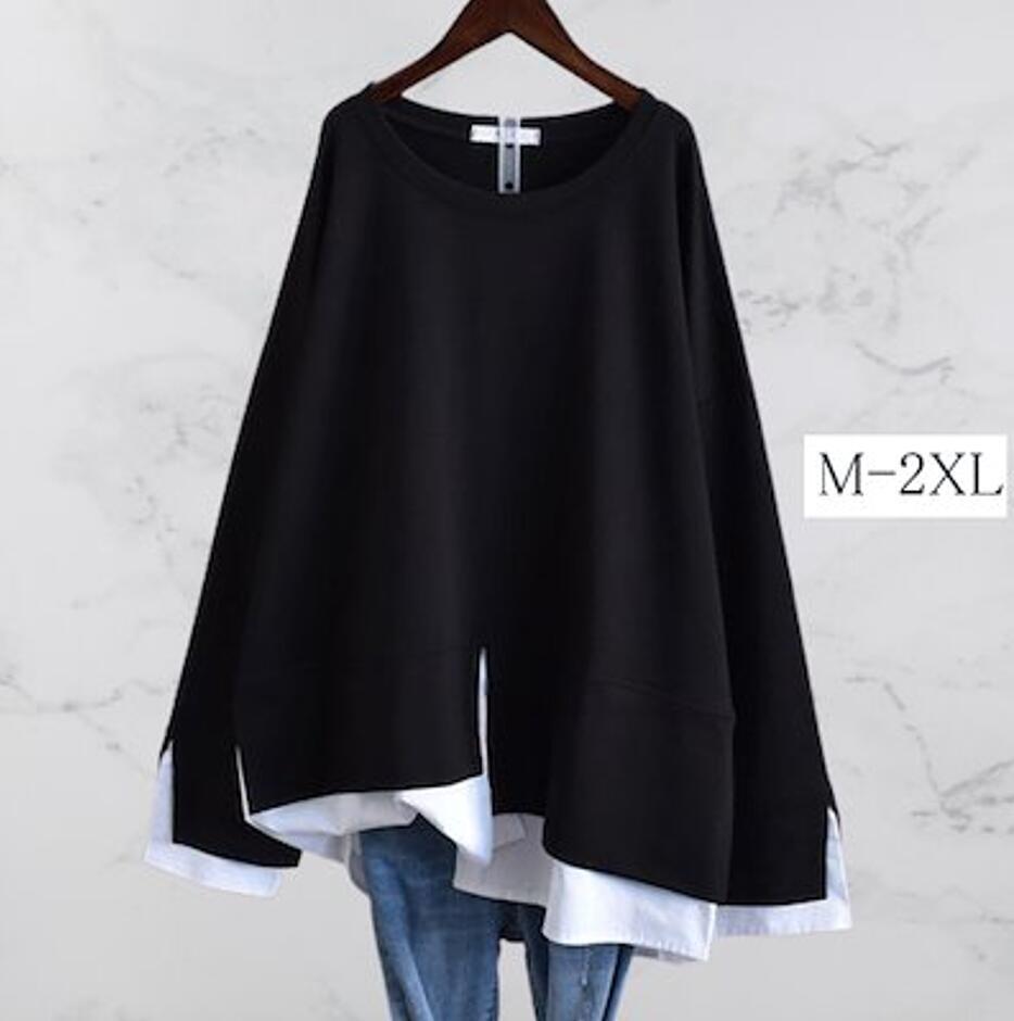 - 春秋新品/ブラウス レディース 長袖ブラウス 配色 切り替え オシャレブラウス カジュアル トップス 大人通勤 ゆったり tシャツ/Mサイズ