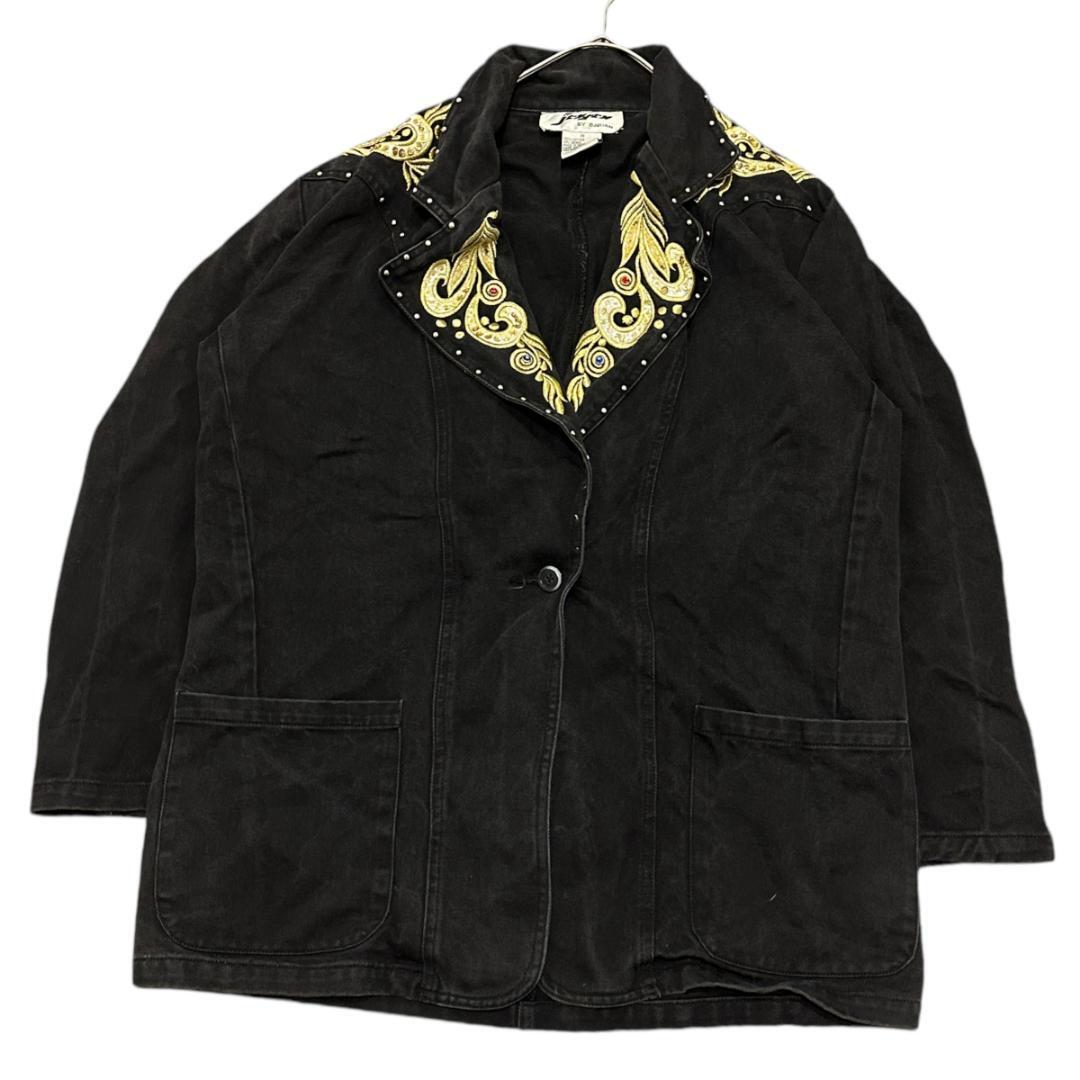 - ヴィンテージ ブラックデニムジャケット スタッズ カバーオール 刺繍 u60 L相当