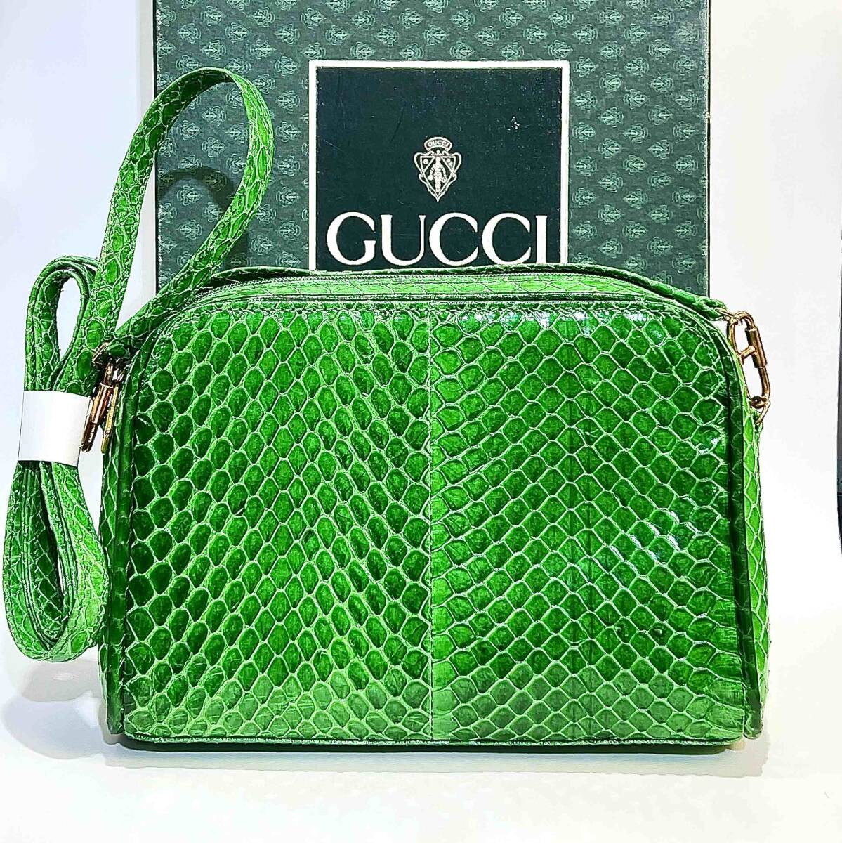 - GUCCI グッチ オールドグッチ パイソン ショルダーバッグ グリーン スエード 緑 GP 箱 レディース 斜め掛け ショルダーポシェット 美品