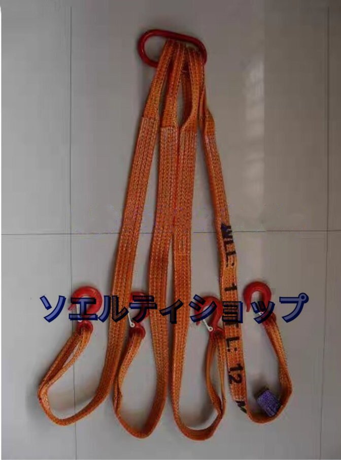 - 高品質★2本吊り ベルトスリング スリングベルト 作業用 荷吊り 合金鋼製フック付き リング付き ポリエステル製 2m 耐荷重2t