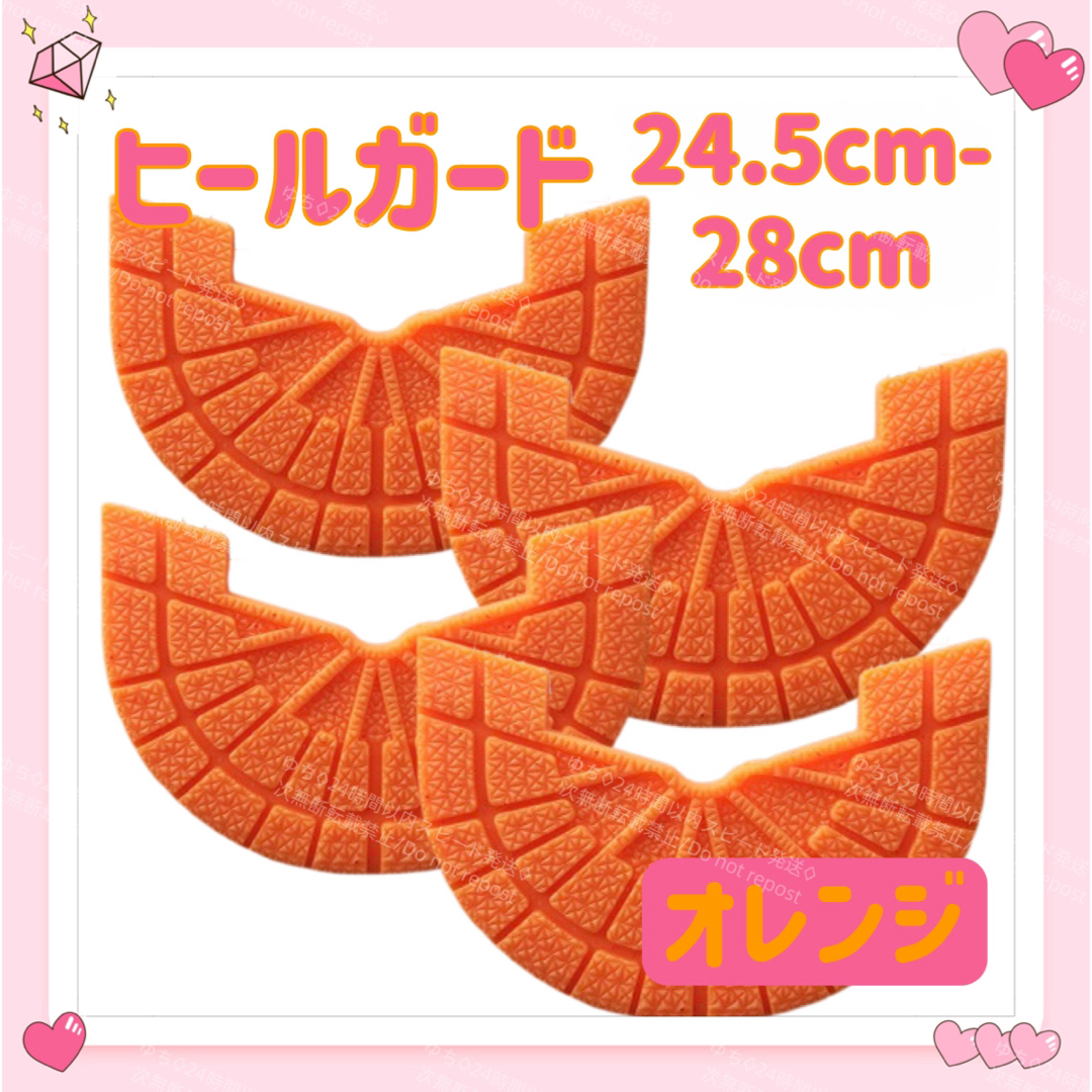 - ヒールガード ソールガード 4枚セット 2足分 スニーカー プロテクター 保護 補修 24.5cm-28cm オレンジ