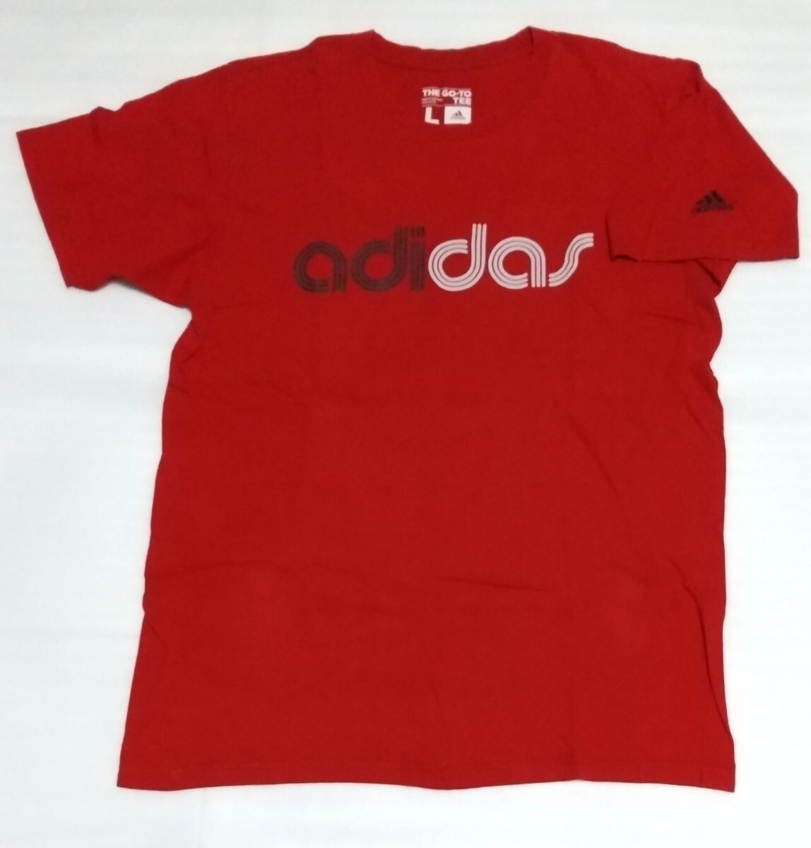 > ☆adidas.com サイズL(ジャパン2XO) 半袖Tシャツ THE GO-TO TEEスポーツCOTTONティー曲線プリント フアッション ウェア赤レッド アディダス