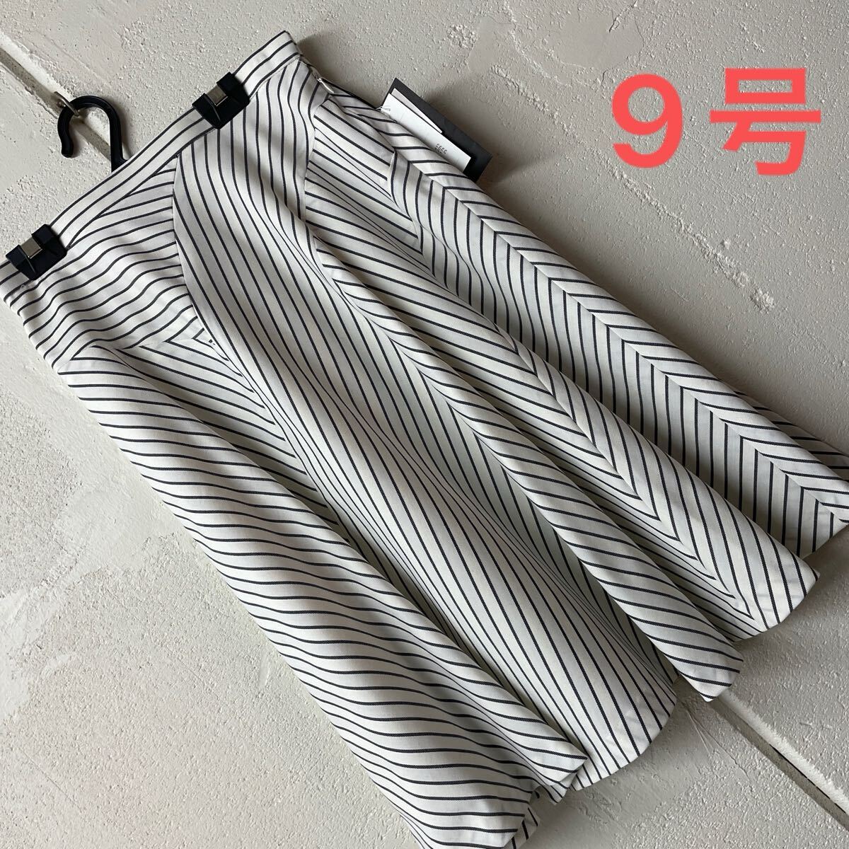 - 9号サイズ日本製切り替えストライプスカート生成り黒グレー