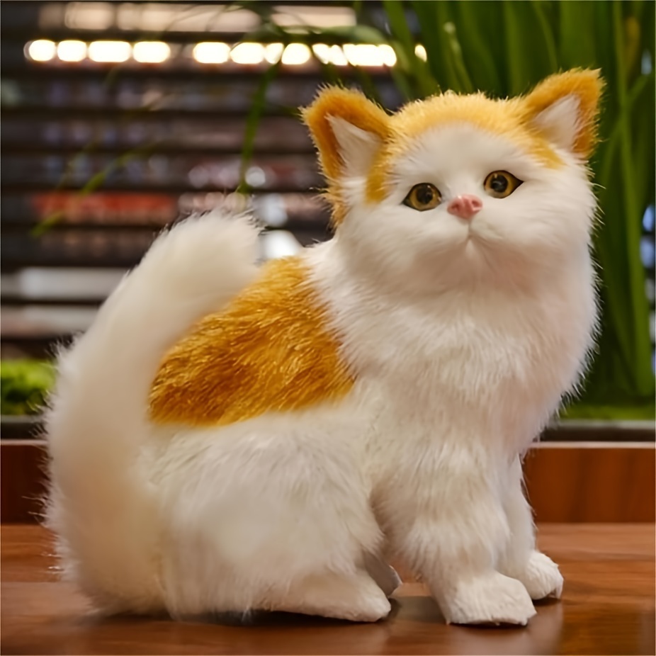 - リアル 猫 16cm 置物 かわいい 茶色 白 ホワイト 動物像 フェイクファー ねこ ミニチュア インテリア フィギュア ネコ おしゃれ 模型 t3607