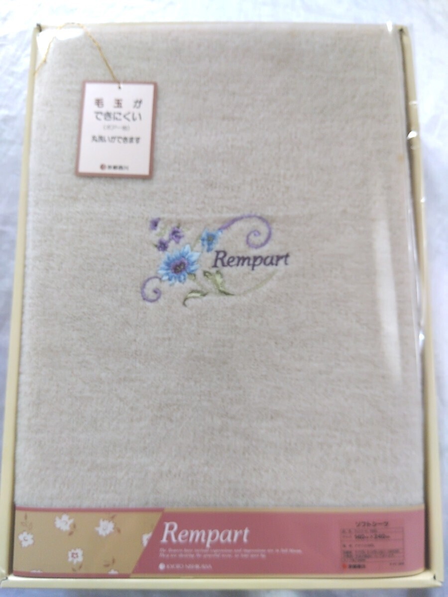- 【未使用】京都西川 ソフトシーツ ランパール〈9302〉コードNo.7700044 ベージュ 140×240cm アクリル100% 丸洗い可 ボアー地 Rempart