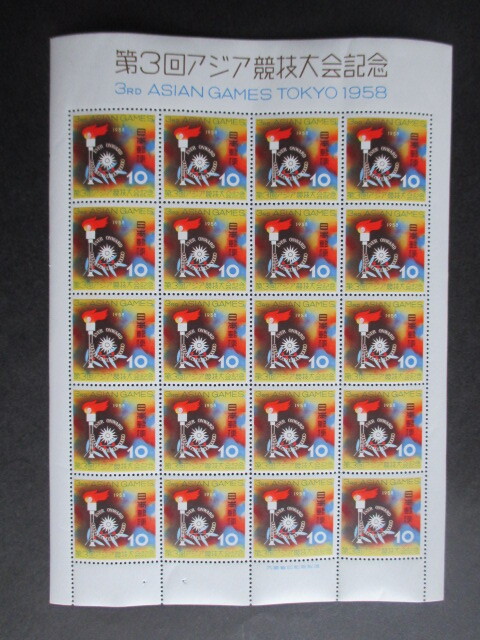 - コレクター出品 第3回アジア競技大会記念 聖火とマーク 記念切手★シート発売日 1958.5.24【14-71】