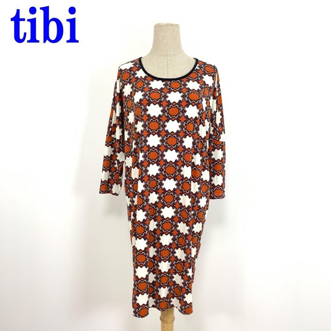 - ティビ ロングワンピース 七分袖 総柄TIBI ブラウン ストレット 茶色系 0 C1537