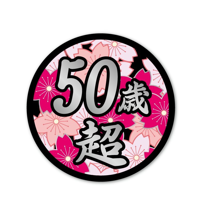 - (シルバー) 面白ステッカー 50歳超え 桜 9cm丸 ネタ おもしろ パロディ
