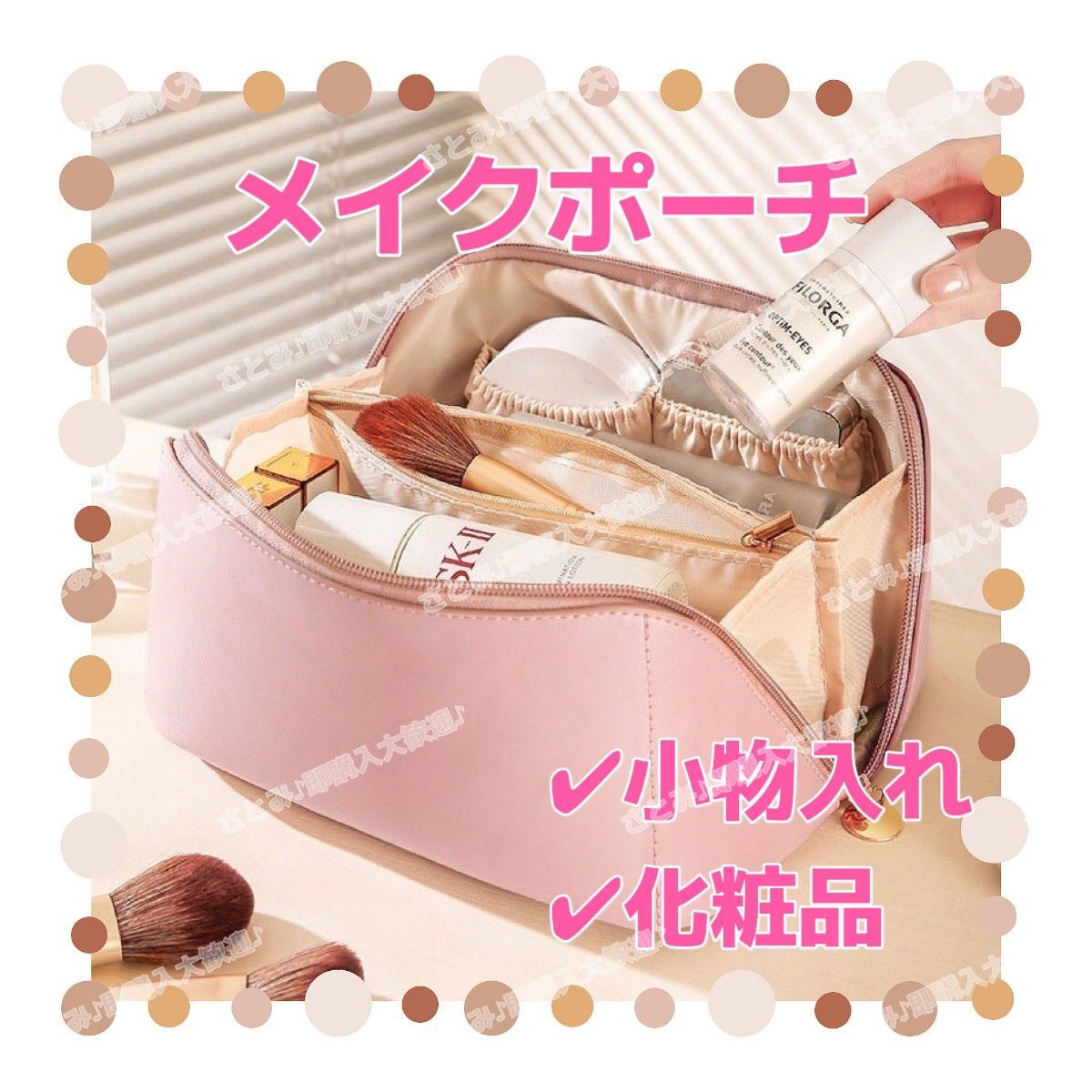 - 大容量 メイク ポーチ 化粧ポーチ 小物入れ レザー 可愛い シンプル ピンク