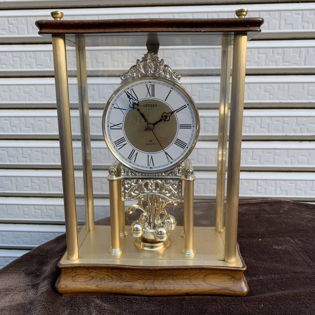 > ★ CITIZEN シチズン 置き時計 4RG835 ゴールドカラー 回転振り子 振り子時計 置時計 時計 クォーツ【中古品】★