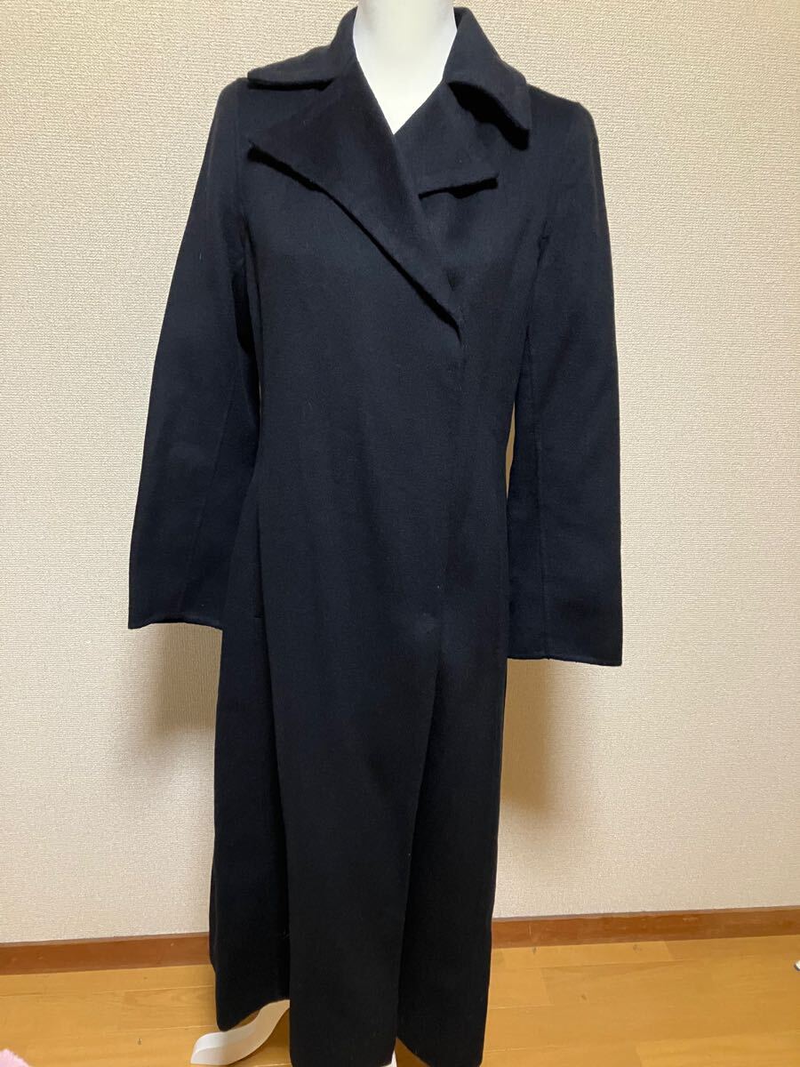 > シンクロSYNCHRO黒ウールロングコート402つ目ボタン外れUSED※レディースロングコート・黒ロングコート・ ロング・ アウター