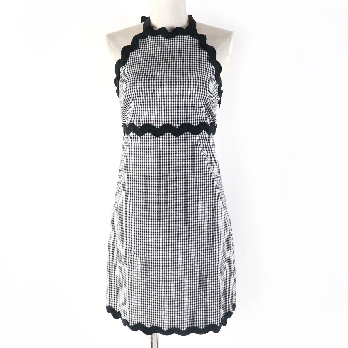 - 美品☆MIUMIU ミュウミュウ 2019年製 MF3410 ギンガムチェック ホルターネック ワンピース ブラック系 38 イタリア製 正規品 レディース