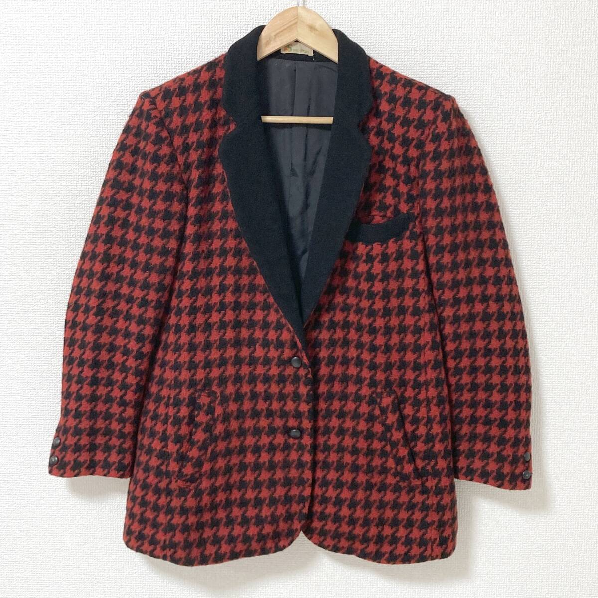 > 70s IS ISSEY SPORT ウール 千鳥格子 テーラードジャケット 赤黒 9号 イッセイミヤケ スポーツ ブルゾン コート VINTAGE archive 4110176