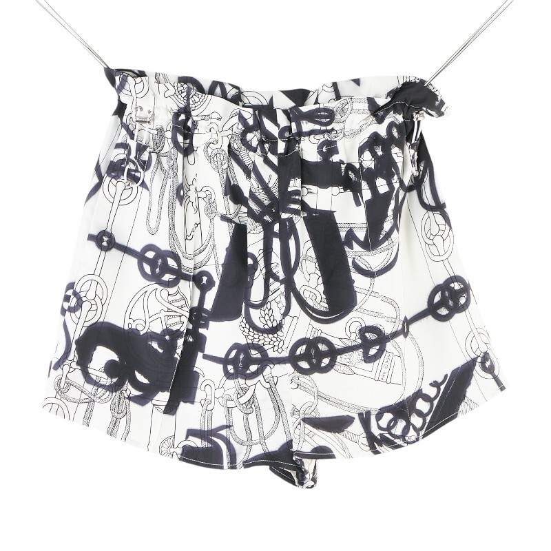 > エルメス シェーヌダンクル ボトムス ハーフパンツ サイズ:34 ホワイト ブラック シルク レディース HERMES 【中古】