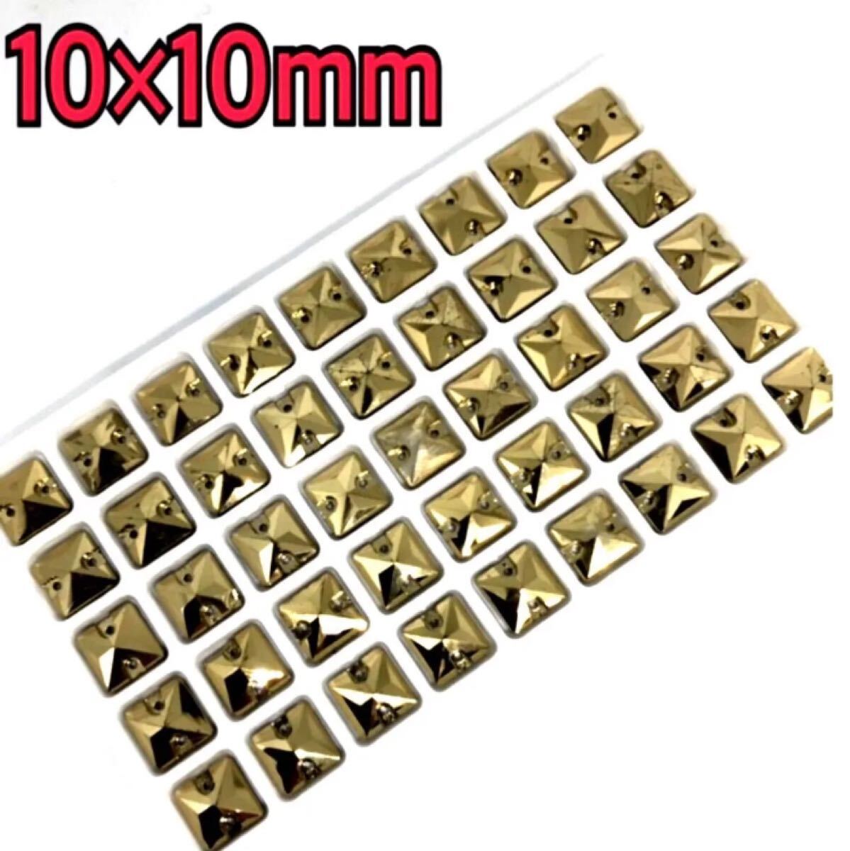 - 10mm 45個 正方型 ガラスビジュー 衣装装飾用 高輝度 ソーオン レオタード 新体操 金色