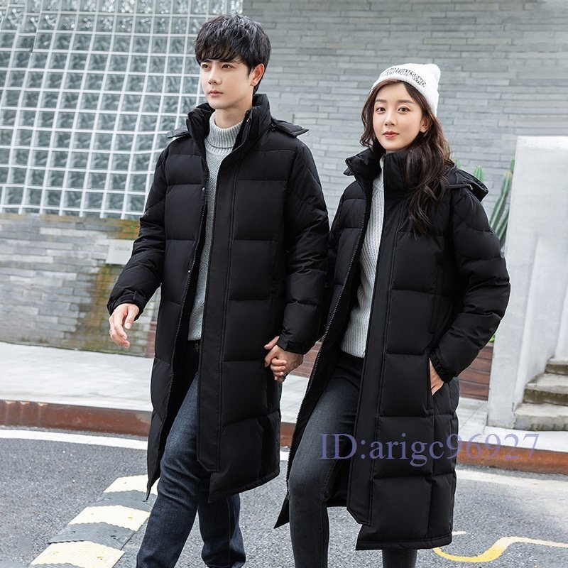 > Y702☆新品冬 男女兼用 ロング丈 フード付き ダウンジャケット アウトドア 厚い暖かい オシャレ ハンサム ブルゾン ブラック S-3XL