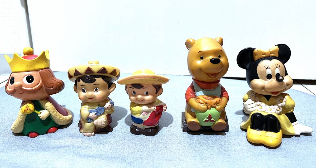- 昭和ソフビ ビンテージ 銀行の粗品 ノベルティソフビ貯金箱 5台(王様、闘牛士、メキシカンボーイ、プーさん、ミニー) 希少 複数