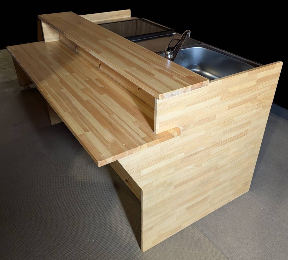 > 対面式カウンター付キッチン★ナチュラル系ウッドカバー★木目★ワンレバー水栓★2口IH★W1603×D110×H912㎜★手作り【展示品★送料別】