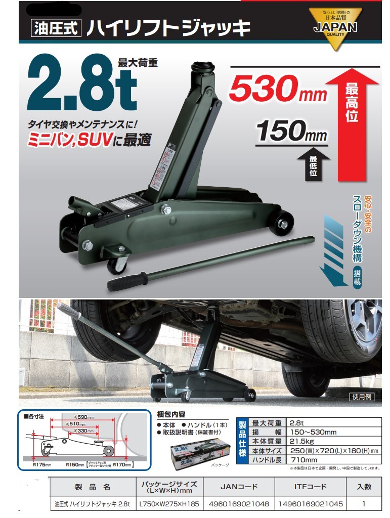 > 運賃無料!猿でも53㎝も上げられる程に安心2.8tフロアジャッキ!やはり事故破損し命と引換はNG!他出品者企業に出来ぬアフター体制と最強品質