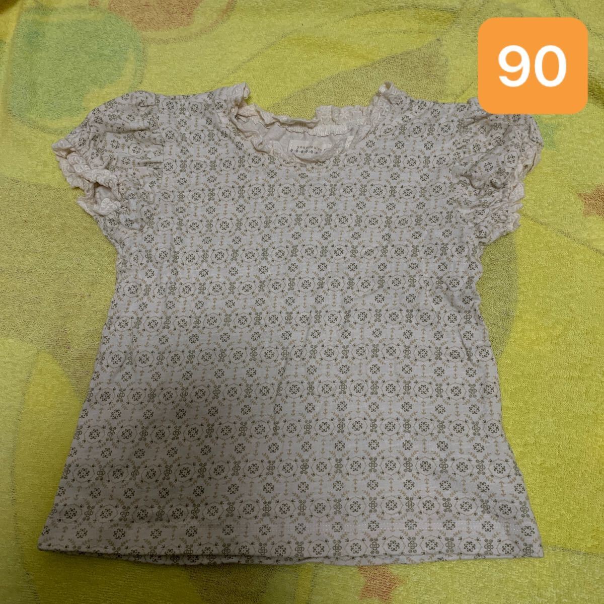 - バースデイ フリルレース 小花 クローバー アイボリー 半袖 トップス 90