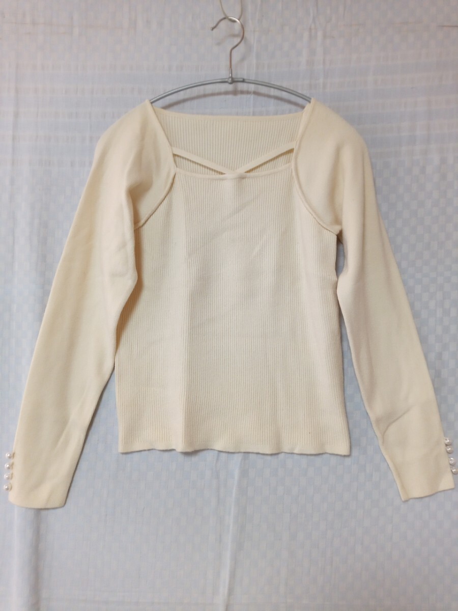 - 10213 ★★ リブボレロデザイン両袖口かざりビーズ付トップス 長袖 サイズM 新品