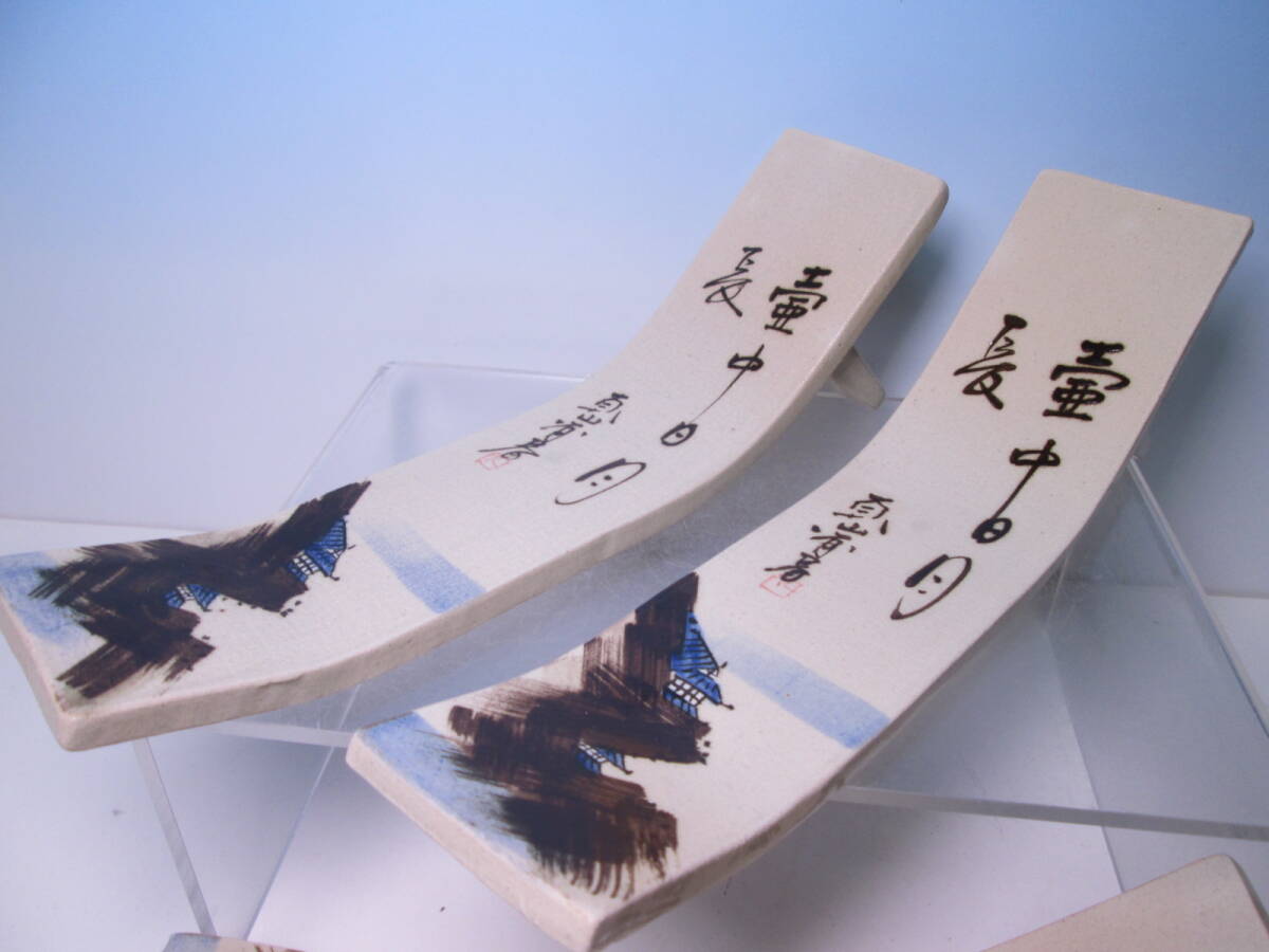 > ☆お料理屋さんの器 在印 乾山 『壷中日月長』 短冊形 長向付 二客 箱無し 長皿/懐石/割烹/日本料理