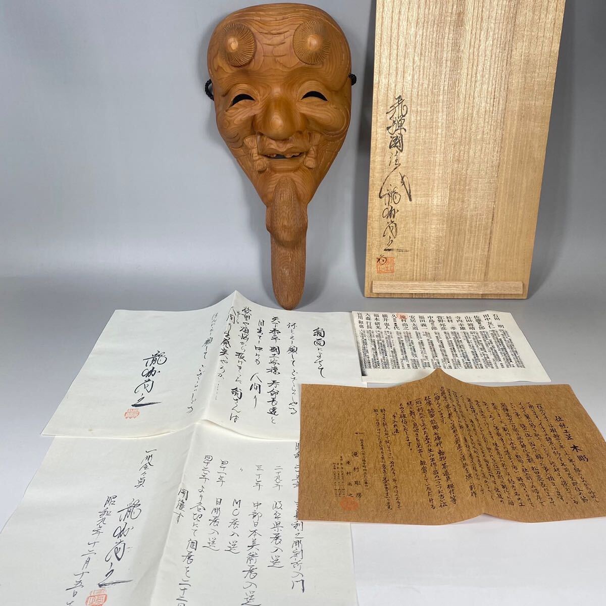 - 滝村尚之 一位木彫 「翁面」共箱 仏教美術 彫刻 木彫 能面 在銘 置物 伝統工芸 飛騨 美術品