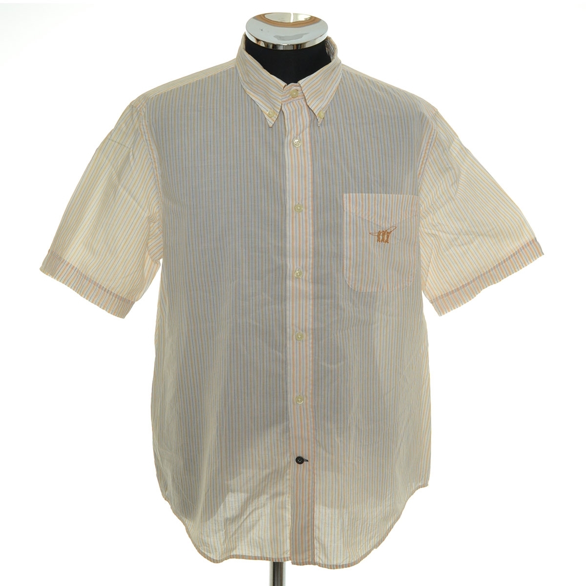 - 〇522822 HenryCotton's ヘンリーコットンズ ○半袖 シャツ ボタンダウン サイズ40 メンズ オレンジ系 ストライプ
