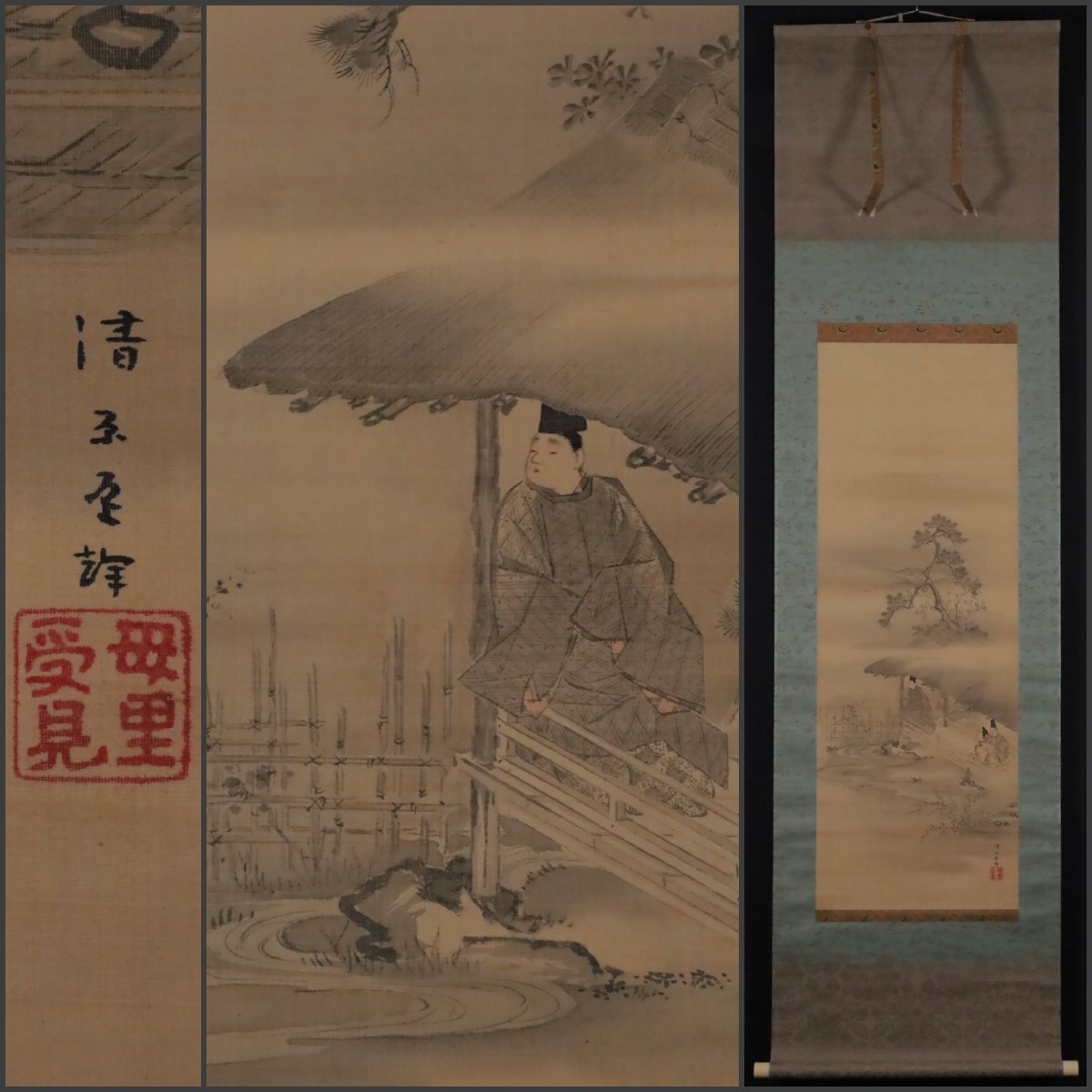 - 【模写】吉】11577 守住貫魚 源氏物語之図 守住周魚極箱 住吉広定師事 住吉派 徳島藩 物語絵 大和絵 風俗画 茶掛け 茶道具 掛軸 掛け軸