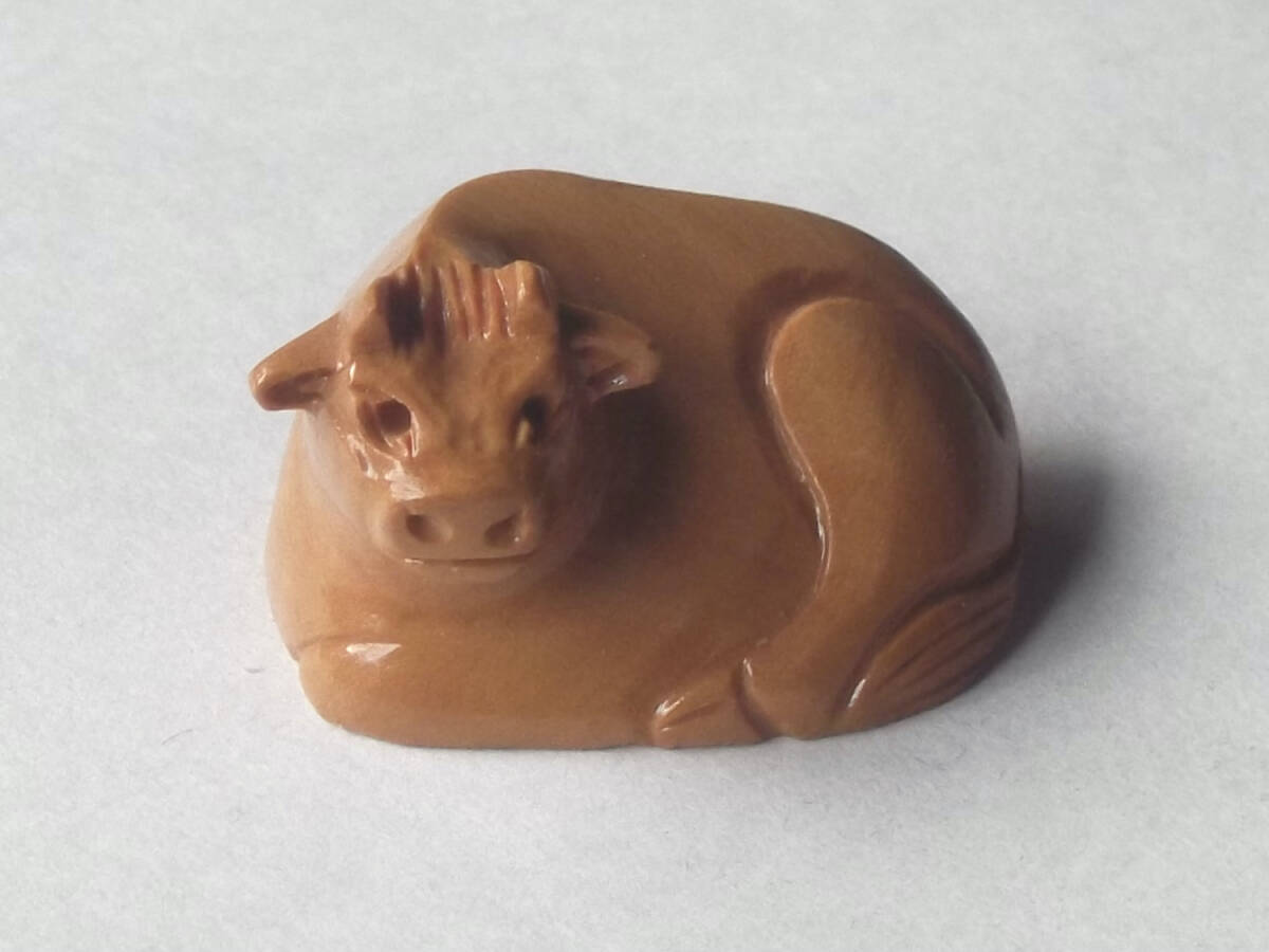 - 昭和 レトロ 柘植細工 干支 牛 ウシ 丑 ミニチュア 動物 豆人形 木彫り 木工芸 彫刻 置物 作家物 在銘 薊