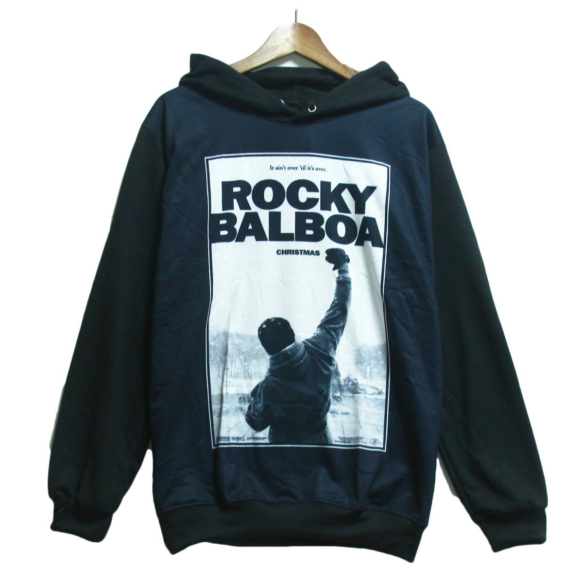 - プルオーバーパーカー メンズパーカー ロッキー ボクシング 映画 ストリート系 ダンス スウェット フード付き 薄手 春物 ★pk0053-blk-m