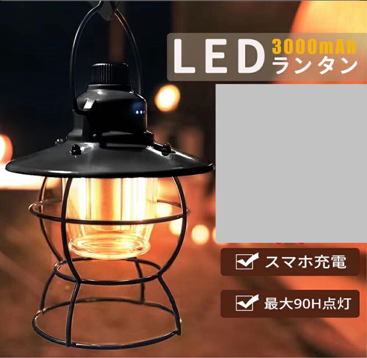 - ランタン LEDランタン LED レトロ キャンプ 高輝度 360ルーメン 3段階調色 無段階調光 USB充電式 3000mAh 最大90時間 IPX4