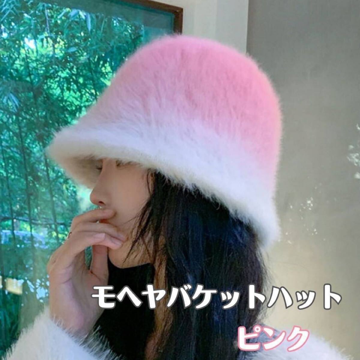 - .モヘヤ バケットハット ピンク バケハ レディース グラデーション 帽子