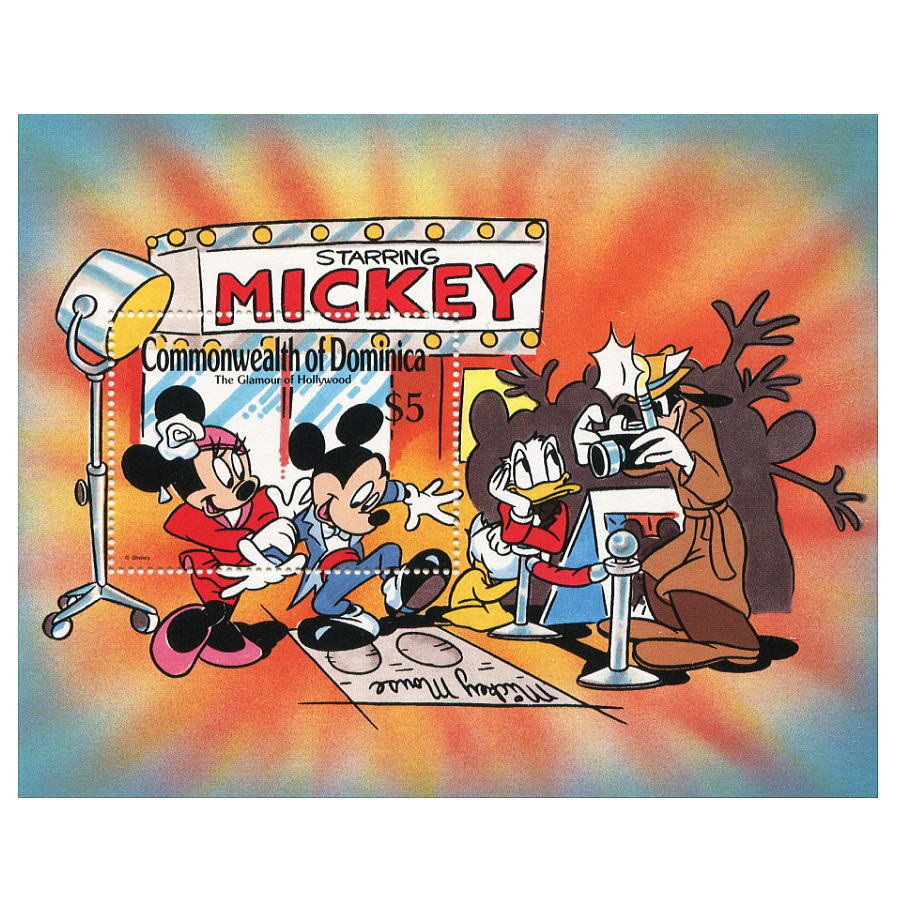 - ディズニー ミッキー 小型切手(ハリウッド/足形) 発行国Dominica 1989年発行 未使用 ミニー ドナルド グーフィー