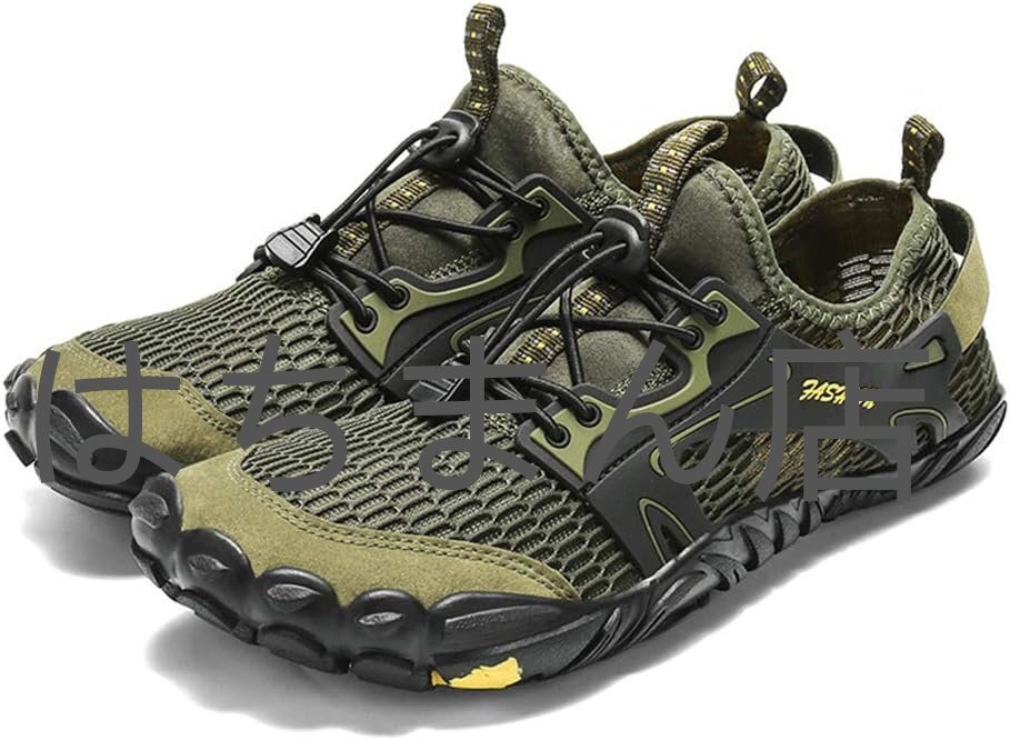 - マリンシューズ ウォーターシューズ 水陸両用 幅広 アクアシューズ オリーブグリーン 通気性 速乾 滑り止め 24.5cm-28cmサイズは選べます