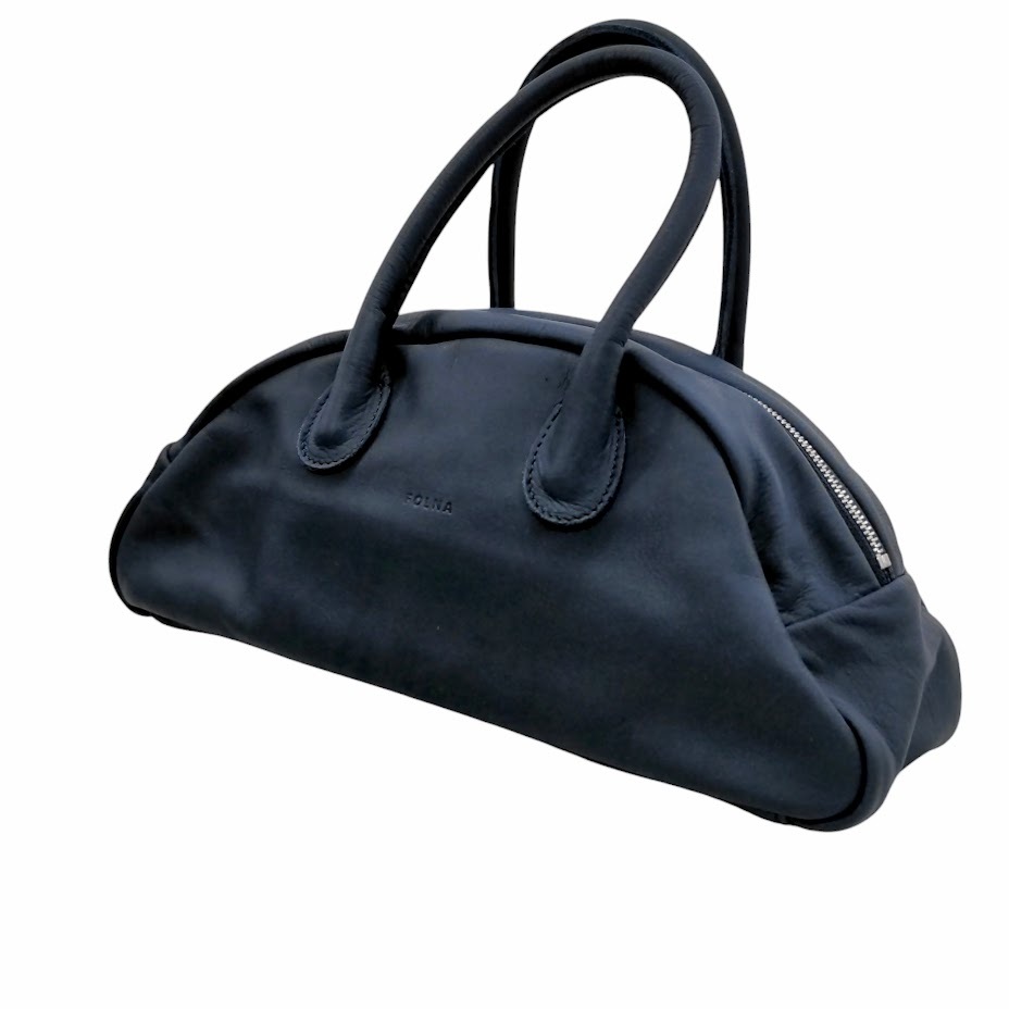 - Folna フォルナ レザー ボストンバッグ ハンドバッグ ネイビー ブルー系