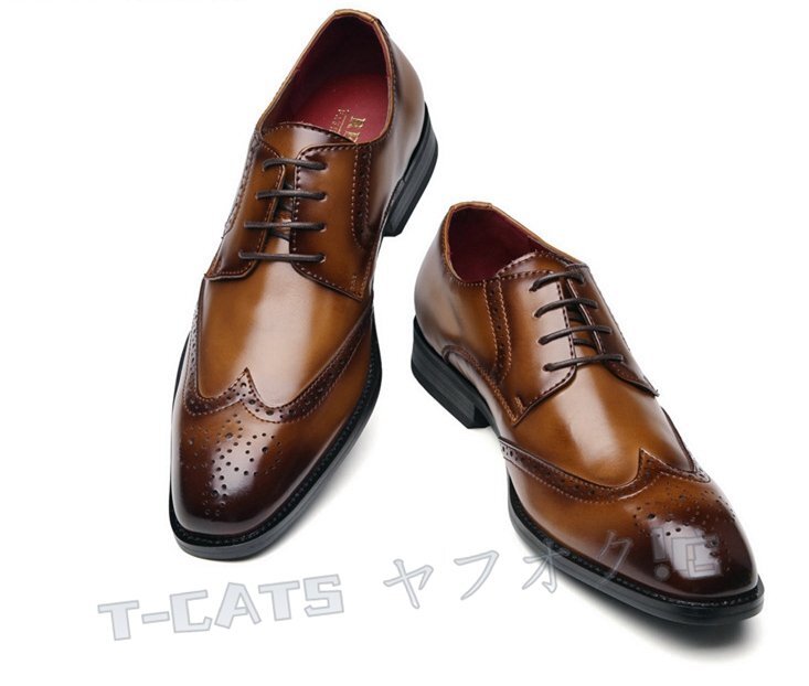 - 新品レザーシューズ 牛革 ビジネスシューズ メンズ 本革 職人手作り 紳士靴 革靴 ウイングチップ 通勤靴 フォーマル ブラウン24.5~28cm