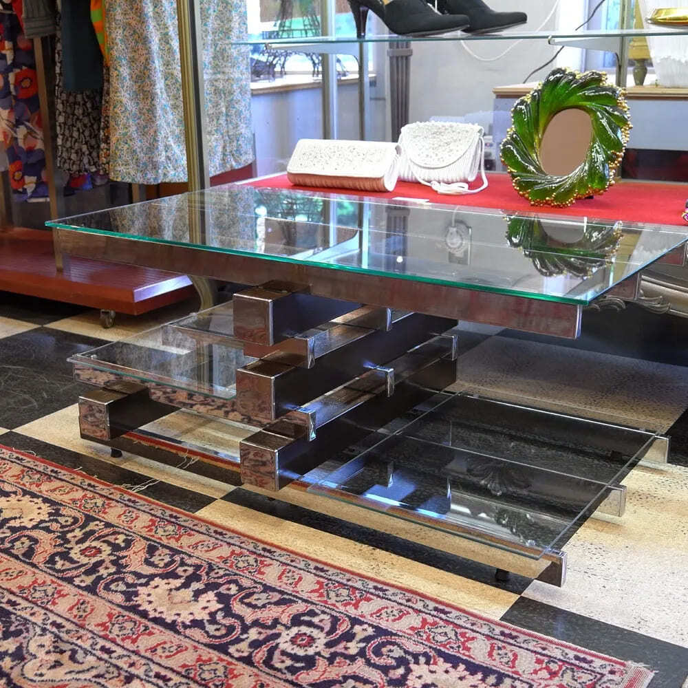 - 【ウイスキーボトルにロックグラスが良く似合うセンタテーブル】 テレビ台ガラス メタル モダン70年代インテリア イタリアヴィンテージ家具