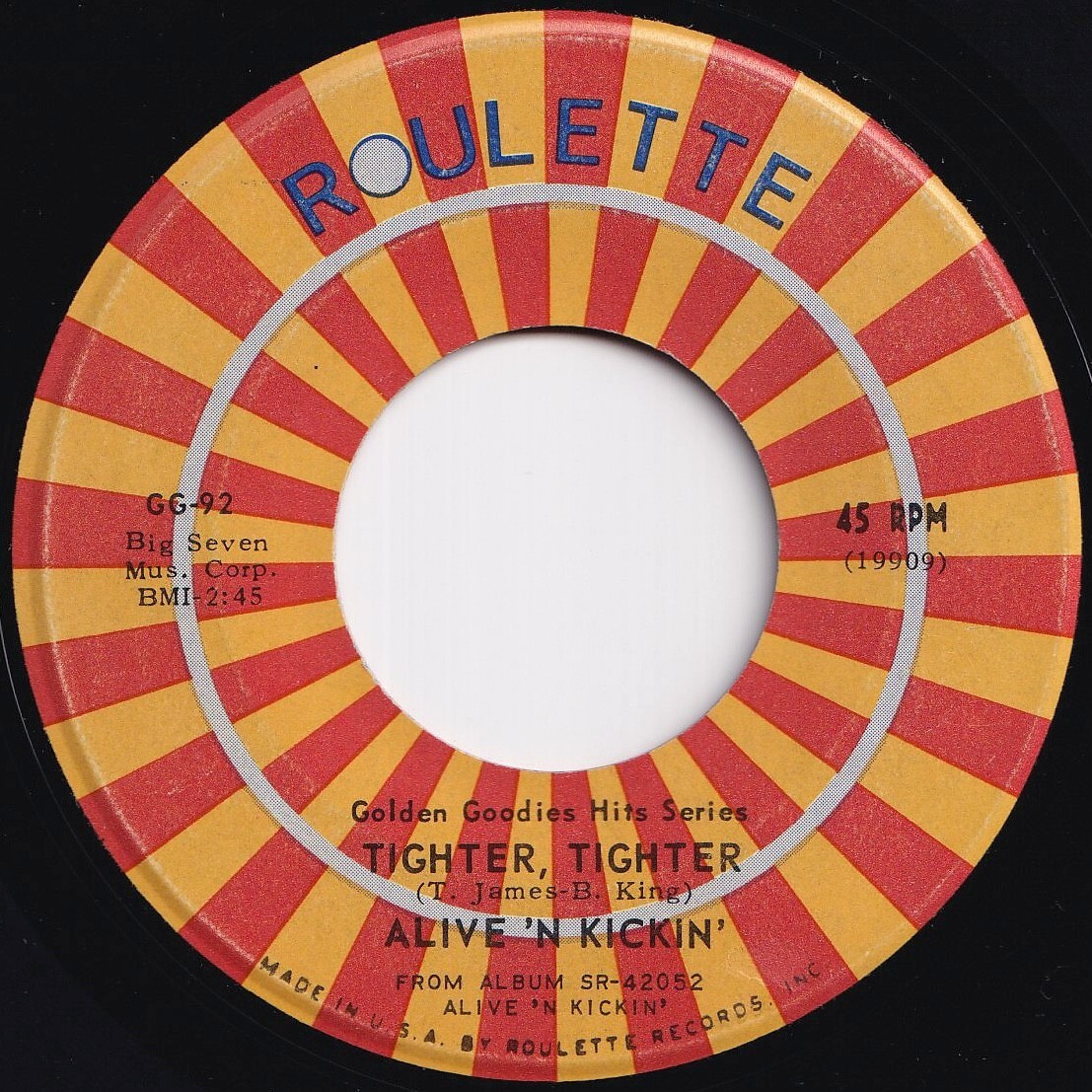 - Alive 'N Kickin' / Derek Martin Tighter, Tighter / You Better Go Roulette US GG-92 208564 ロック ポップ レコード 7インチ 45