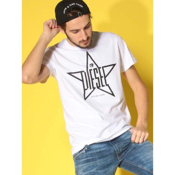 > DIESEL Tシャツ M 半袖 スター ロゴ プリント 星 ホワイト ディーゼル