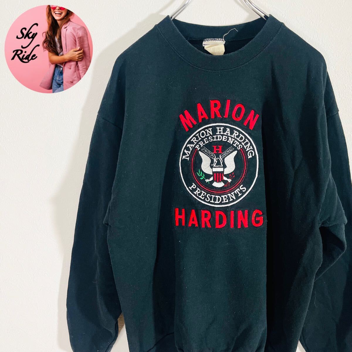 > JERZEES ジャージーズ ヴィンテージ マリオンハーディング サークルロゴ プルオーバースウェット トレーナー ブラック L 古着 #TB1045