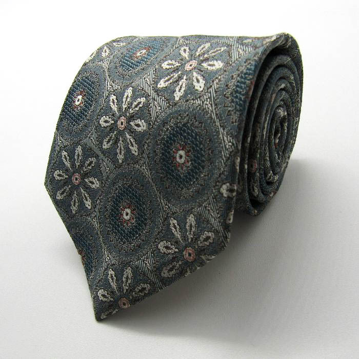 - ジェイプレス ブランド ネクタイ 総柄 花柄 ドット シルク PO メンズ グレー J.PRESS
