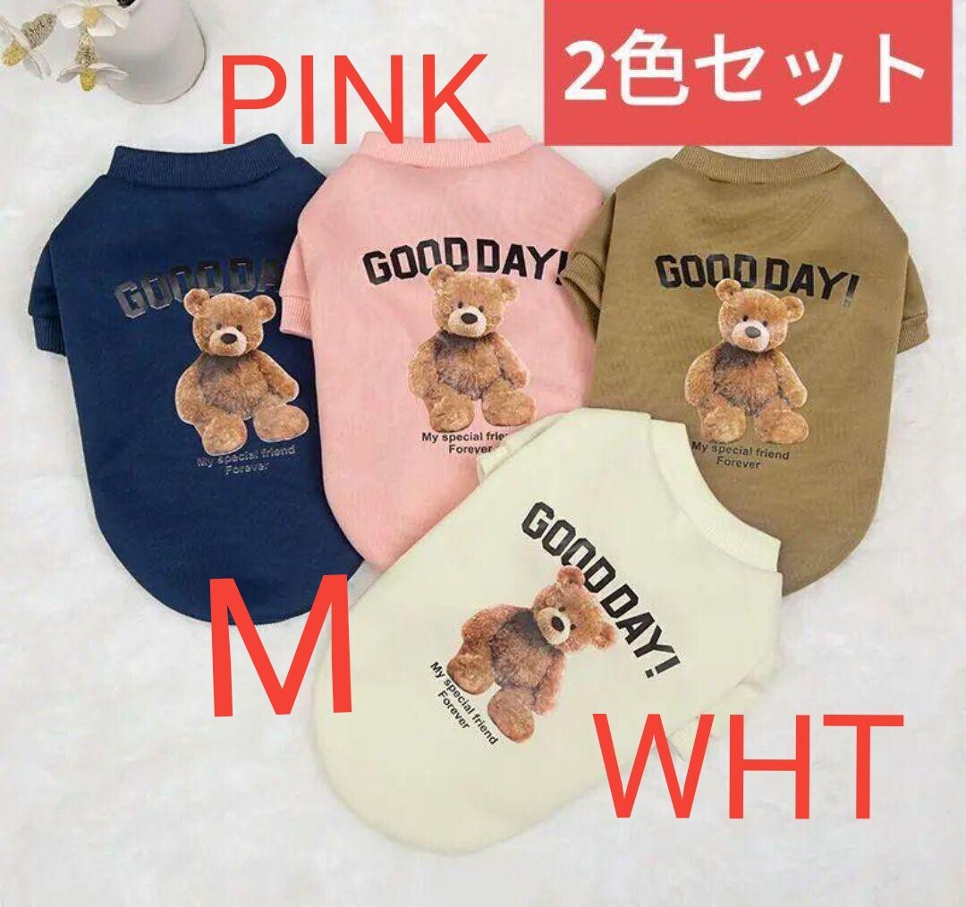 - M ピンクとホワイト 2色セット犬服 GOOD DAY トレーナー裏起毛であたたかい ペット服