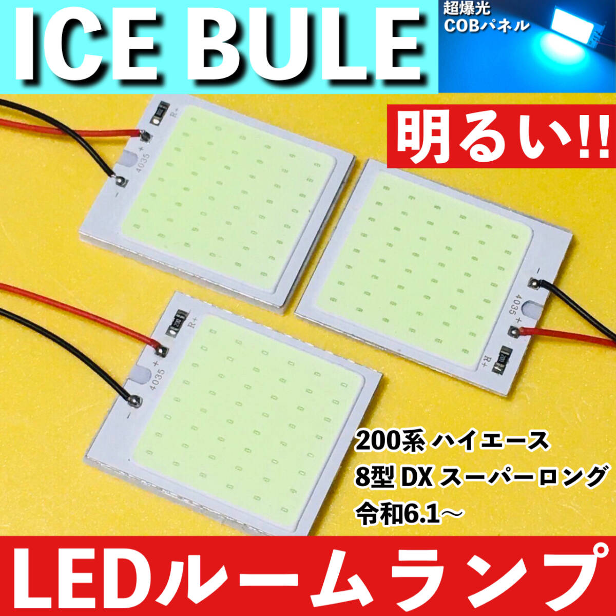 > ハイエース 8型 DX スーパーロング 200系 [令和6.1~] アイスブルー LED ルームランプ 超爆光 COBパネル 水色 ライト パーツ アクセサリ