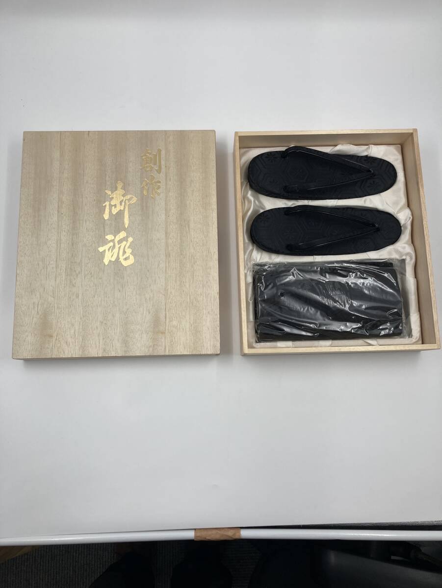 - 【美品】創作 御誂 草履 バッグ セット 刺繍 振袖用 黒 レディース 和装 着物 木箱付き