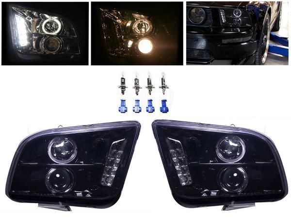 > 特注日本光軸 フォード マスタング コンバーチブル 06-09y ブラック LED イカリング ヘッドライト 左右 セット ヘッドランプ 送料無料
