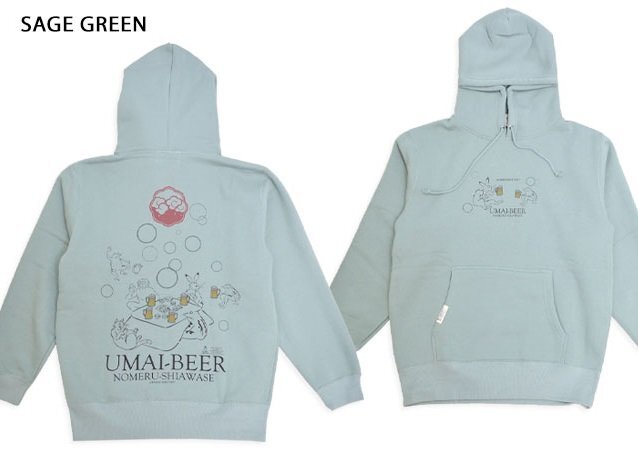 > おつかれ生ですプルパーカー◆喜人 セージグリーンXXLサイズ KJ-42305 和柄 和風 ビール 鳥獣戯画 スウェット きじん